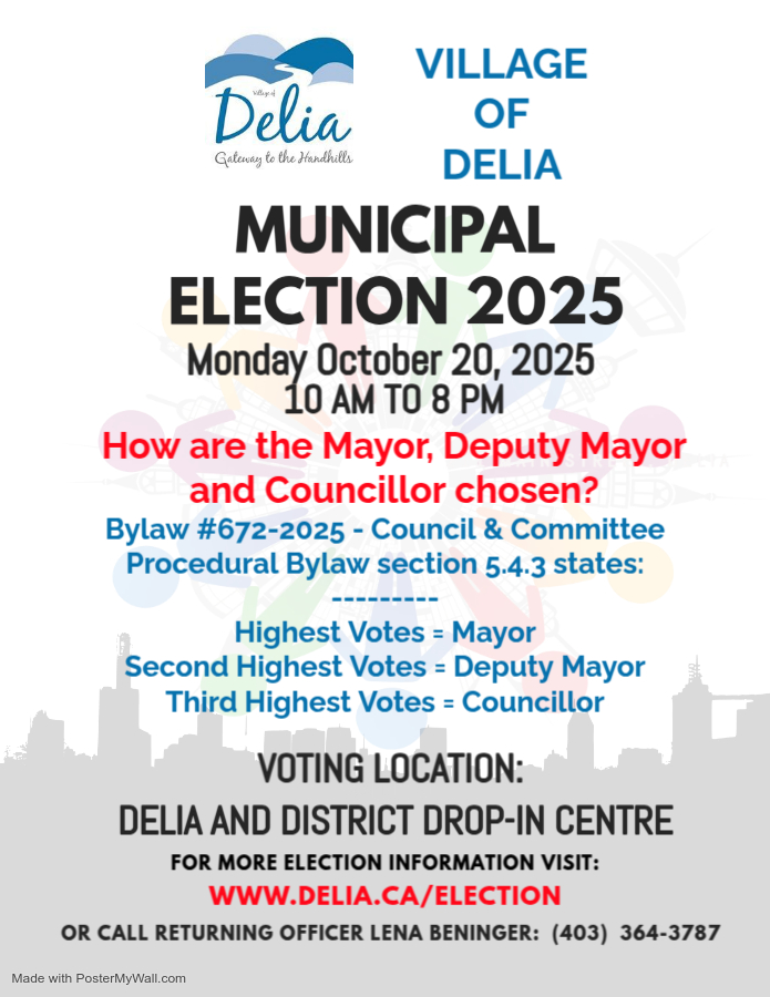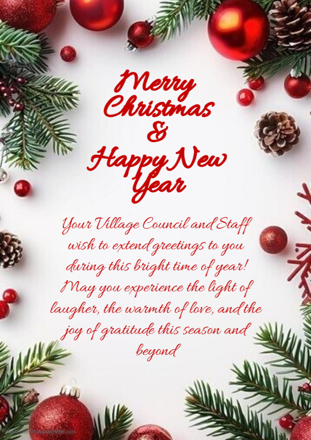 The Village Office will be closed from November 7, 2025 to November 21, 2025. Public Works will be opened during this time. For concerns relating to public work contact 403-506-0196.